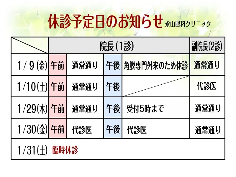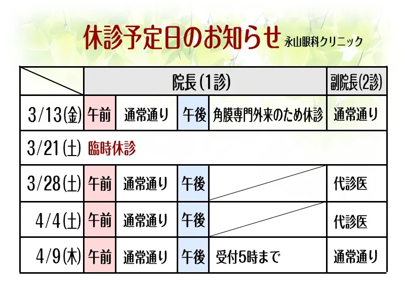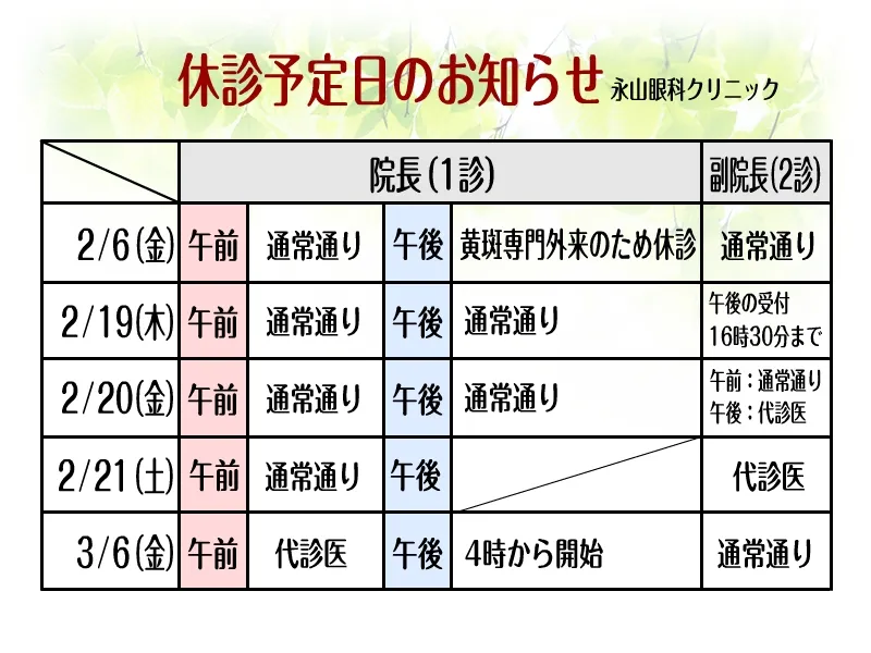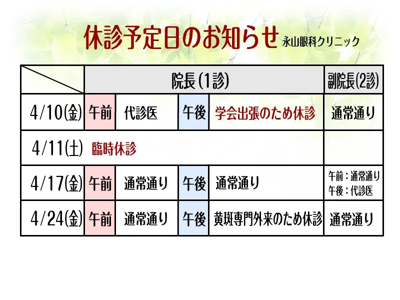 休診予定日を更新いたしました。